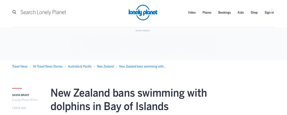 Similarly, the New Zealand government has recently made the decision to ban tourists from paying tour companies for the chance to swim with bottlenose dolphins off the Bay of Islands. The local population of dolphins in this region has plummeted in recent years, and plans to ban tourists from swimming with them and limit the time boats can approach them hope to protect the pod.
